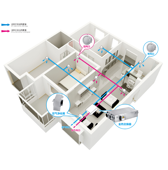 首先咱們需要了解什么是“新風(fēng)系統(tǒng)”,它是由送風(fēng)系統(tǒng)和排風(fēng)系統(tǒng)組成的一套獨立空氣處理系統(tǒng),簡單來說就是通過新風(fēng)機(jī)將凈化過的室外空氣引入室內(nèi),然后再將室內(nèi)污染的空氣排出。